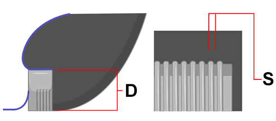 D: 100 mm (3,8” - 3,9”) inklusive Gewinde