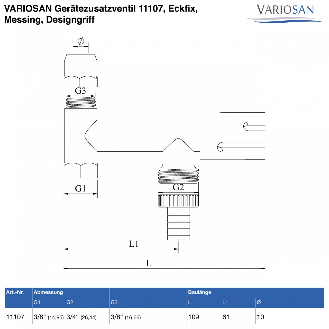 VARIOSAN Gerätezusatzventil 11107, Eckfix, Messing, Designgriff, Rückflußverhinderer, verchromt